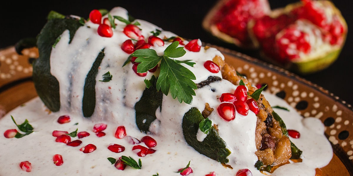 People all over the world love Mexican food. But there's one special dish that's not easy to find everywhere. It's called chiles en nogada. This dish has green poblano peppers filled with meat and veggies. On top, there's a white sauce made of walnuts, and it's sprinkled with red pomegranate seeds. The colours - red, white, and green - match the Mexican flag. If you want to taste this yummy dish, remember to look for it around Mexican Independence Day. Most restaurants only make it during that time of the year.