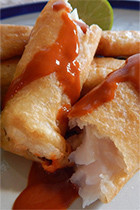 BATTERED MACKEREL WITH MAYO, CHILLI SAUCE, & LIME
